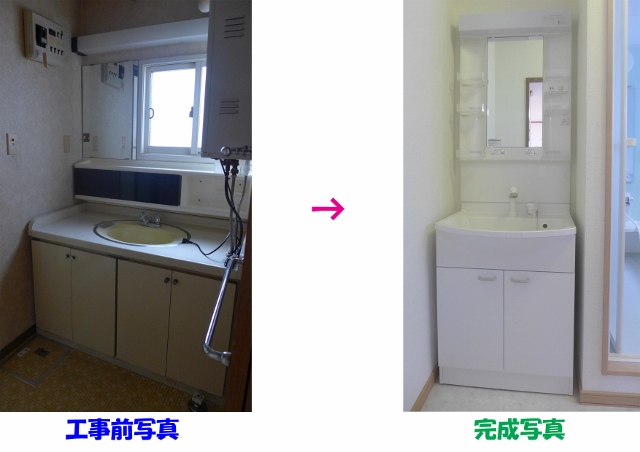洗面台交換工事の紹介です。